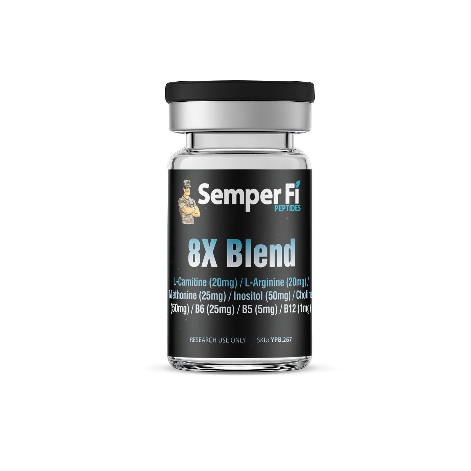 8X Blend L-Carnitine (20mg) / L-Arginine (20mg) / Methonine (25mg) / Inositol (50mg) / Choline (50mg) / B6 (25mg) / B5 (5mg) / B12 (1mg)